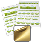 Stickerbogen auf Goldfolie 4/0 farbig bedruckt oval (oval konturgeschnitten)