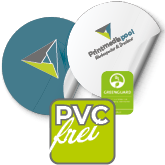 - Textilaufkleber, Sticker mit Weißdruck, PVC-freie Klebefolien u.v.m.